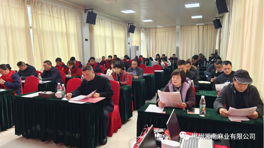 湘南麻業(yè)有限公司領(lǐng)導(dǎo)班子、全體中層干部認(rèn)真領(lǐng)會(huì)報(bào)告內(nèi)容