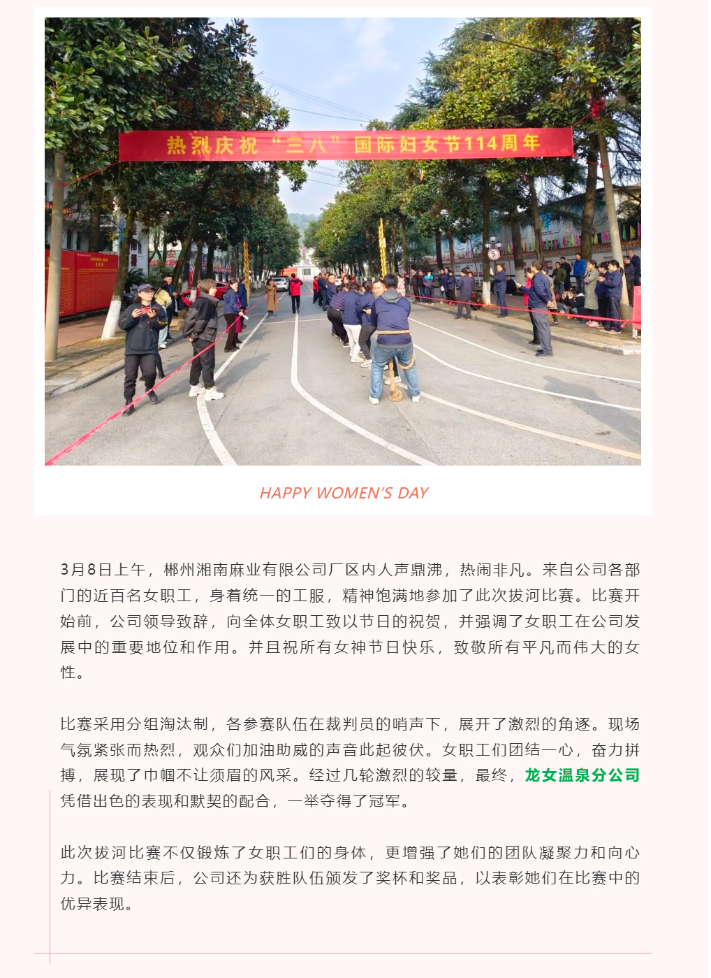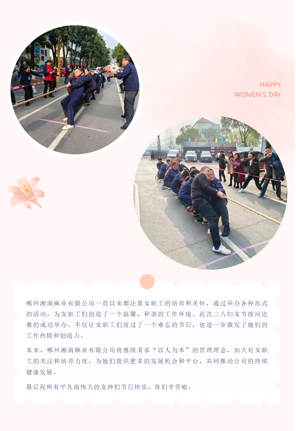 湘南麻業(yè)熱烈慶祝三八婦女節(jié) 拔河比賽展現(xiàn)巾幗風采!